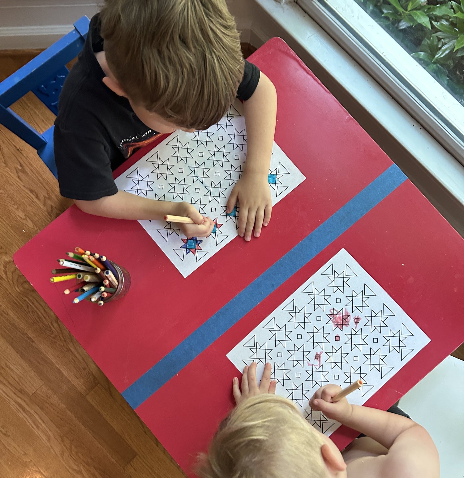 Arlen and Jack might seem young to be in the quilting game, but don't tell them that! They've completed more quilt coloring pages and sorted more fabric into color piles than most quilters twice their ages ;)